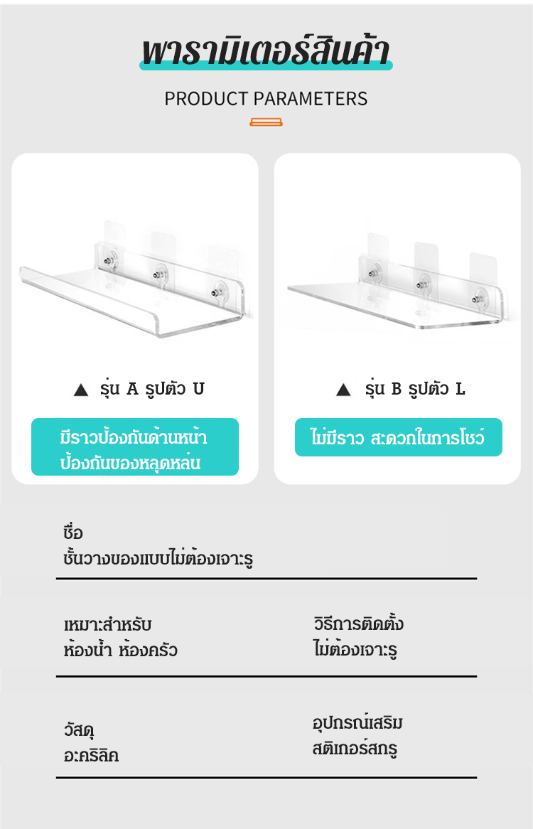 ชั้นเก็บของอะคริลิคหลังประตู/ห้องน้ำ